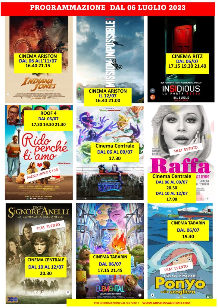 PROGRAMMAZIONE CINEMA SANREMO DAL 06 LUGLIO 2023