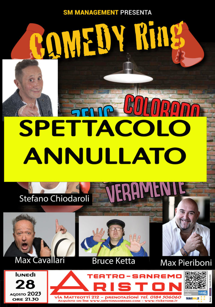Si comunica che lo spettacolo “Comedy Ring” in programma questa sera al Teatro Ariston è stato annullato.