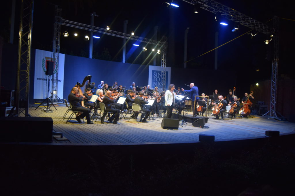 La serata dedicata al grande Domenico Modugno è stata un crescendo di emozioni, Peppe Voltarelli, accompagnato dall’Orchestra Sinfonica di Sanremo diretta dal M° Giancarlo De Lorenzo ha interpretato con passione canzoni popolari in dialetto e poi i grandi successi come ” Nel blu dipinto di blu” , ” L’uomo in frack” , Lazzarella, Musetto, La donna riccia, Lu pisce spada, e altre. Peppe Voltarelli è un personaggio nel panorama musicale italiano, che solitamente canta con la sua chitarra, mentre in questo concerto ha avuto l’opportunità di essere accompagnato dalla splendida Orchestra Sinfonica di Sanremo, ottenendo calorosissimi applausi da parte del pubblico.