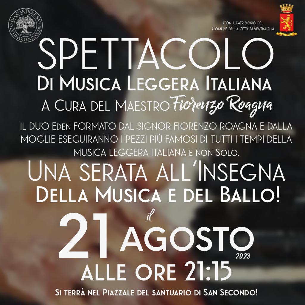 Si comunica che per motivi organizzativi, lo spettacolo musicale del “Duo Eden”, già previsto per le ore 21:15 di venerdì 18 agosto nel piazzale antistante la Chiesa di San Secondo, viene spostato al successivo lunedì 21 con lo stesso orario.