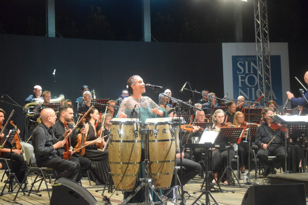 NOA ( ACHINOAM NINI) artista di fama internazionale , cantautrice, poetessa , percussionista, dotata di un eccezionale talento e caratterizzata da uno stile interpretativo ricco di nuances, ha letteralmente incantato il pubblico di Sanremo, proponendo un concerto di altissimo valore artistico. Il programma della serata è stato apprezzato dal pubblico per le perfette esecuzioni di tutti i brani tra i quali NOA ha cantato “ Santa Lucia Luntana”, ” Tammuriata nera” , in omaggio agli amici italiani. Prima di salutare il pubblico l’Artista ha lasciato alcune sue riflessioni sulla Pace e per i diritti umani, sulla vita ” Celebrate la vita ogni giorno, ogni ora , la vita è sacra, la Vita è bella”, offrendo poi una magnifica interpretazione del brano ” Beautiful That Whay “ colonna sonora del film ” La Vita è bella”. Il concerto si è concluso in un intenso crescendo di applausi per NOA , GIL DOR, M ° Giancarlo De Lorenzo e l’Orchestra Sinfonica di Sanremo.