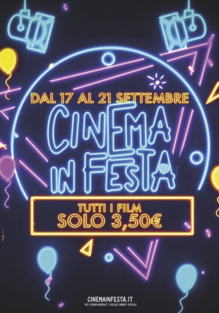 L’iniziativa Cinema in Festa, ispirata alla Fête Du Cinéma francese, promossa dal MiC con la collaborazione del David di Donatello – Accademia del Cinema Italiano, torna dal 17 al 21 settembre con la sua terza edizione. Per cinque giorni, dalla domenica al giovedì, il biglietto costerà solo € 3,50 per tutti i film.