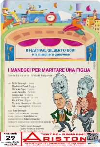 Il progetto di mettere in scena i Maneggi per maritare una figlia nasce all’interno del primo festival dedicato a Gilberto Govi (1885-1966), in programma al Teatro Sociale di Camogli nel maggio-giugno 2022, come sua conseguenza naturale: la commedia di Niccolò Bacigalupo (in genovese I manezzi pe majâ na figgia) fu infatti, come è noto, il più grande successo di Govi. Questa nuova edizione, tuttavia, non punta solo a celebrare un grande attore riproponendo il suo cavallo di battaglia; vuole anche fugare un equivoco in cui si incorre spesso quando si parla di Govi: pensare che si tratti di una maschera teatrale solo genovese, dialettale. In realtà , Govi è per Genova (e la Liguria) ciò che Totò è per Napoli e Macario per Torino: una maschera espressione diretta dell’identità peculiare della terra in cui è nata, che, proprio per questo, assurge a maschera nazionale, essendo, l’Italia, da sempre, un paese profondamente legato alle proprie culture locali, specie nel campo della comicità . Prova della dimensione nazionale della figura di Govi è la fortunata trasmissione TuttoGovi (ideata da Vito Molinari, Mauro Manciotti e Arnaldo Bagnsaco), che, nel 1980, fu il più grande successo di Rai Tre, replicata per anni sempre con altissimi ascolti. La lunga e memorabile tournée del 1926 in America Latina, con 78 recite tra Argentina, Uruguay e Cile, mostra, inoltre, il respiro internazionale della figura di Govi, che in quegli anni si intreccia con la storia della migrazione dei liguri in Sud America. Proprio per valorizzare il carattere nazionale della comicità di Govi, ad interpretare i due irresistibili protagonisti dei Maneggi, Steva e la moglie Giggia, sono due attori nati a Genova, ma di carriera e fama nazionale: Tullio Solenghi (che cura anche la regia) ed Elisabetta Pozzi. In questa direzione va anche la partecipazione alla produzione di un regista di prosa e di opera celebre in tutto il mondo come Davide Livermore, ideatore del progetto scenografico.