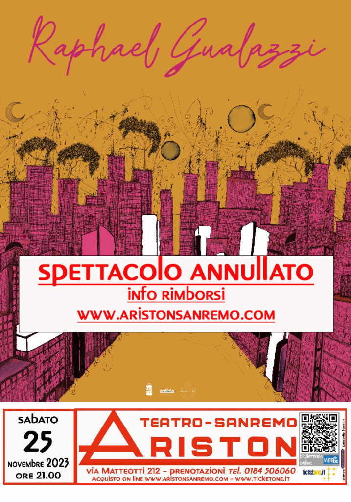 ANNULLATO IL CONCERTO DI RAPHAEL GUALAZZI AL TEATRO ARISTON DI SANREMO