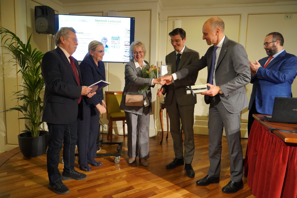 La Senatrice a vita Elena Cattaneo, saggista, ricercatrice e docente universitaria, ha ricevuto il Gran Trofeo alla Saggistica, Premio Letterario internazionale Casinò di Sanremo Antonio Semeria. Lo hanno consegnato il Magnifico Rettore dell’Università di Genova Prof. Federico Delfino e il questore della Provincia di Imperia dott. Giuseppe Felice Peritore, componenti del Comitato d’Onore del Premio con i giurati dott. Marco Mauro, Paola Monzardo Semeria e il presidente di Giuria dott. Matteo Moraglia. Hanno dialogato con la senatrice il dott. Alberto Guglielmi Manzoni, saggista e conferenziere e Marzia Taruffi.