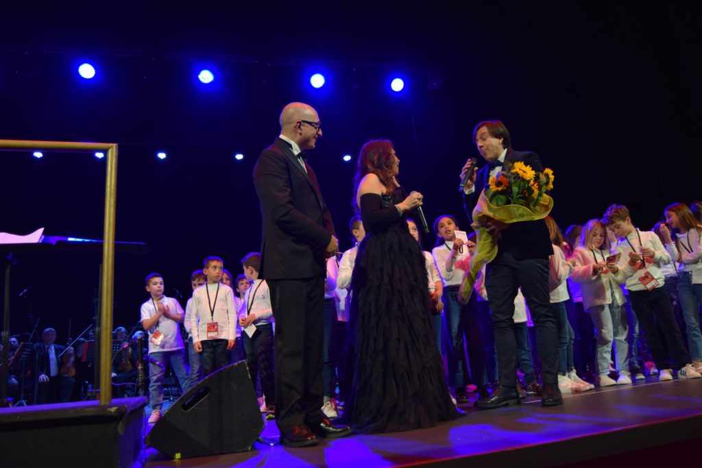 In apertura della serata Walter Vacchino patron del Teatro Ariston ha portato i saluti agli ospiti quali il Dott. Filippo Biolé Presidente della Fondazione Orchestra Sinfonica di Sanremo e Giuseppe Faraldi Assessore del Comune di Sanremo.