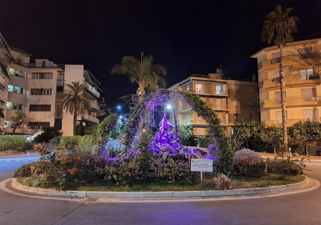 La Fontana delle Sirene di Bordighera si è illuminata di viola in occasione della Giornata Internazionale dell’Epilessia – International Epilepsy Day del 12 febbraio.