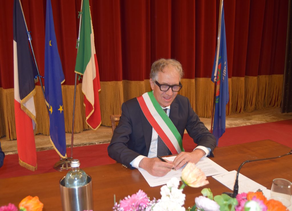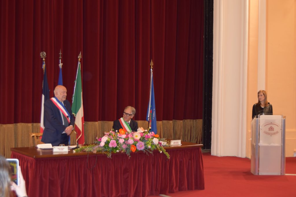E’ stato firmato domenica 24 marzo, alle 9.15, nel Teatro dell’Opera del Casinò, il gemellaggio tra le città di Sanremo e Mentone da parte dei sindaci Alberto Biancheri (Sanremo) e Yves Juhel (Mentone).