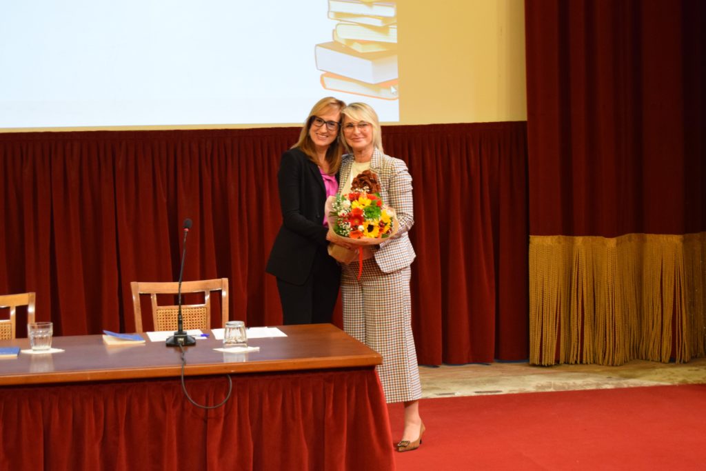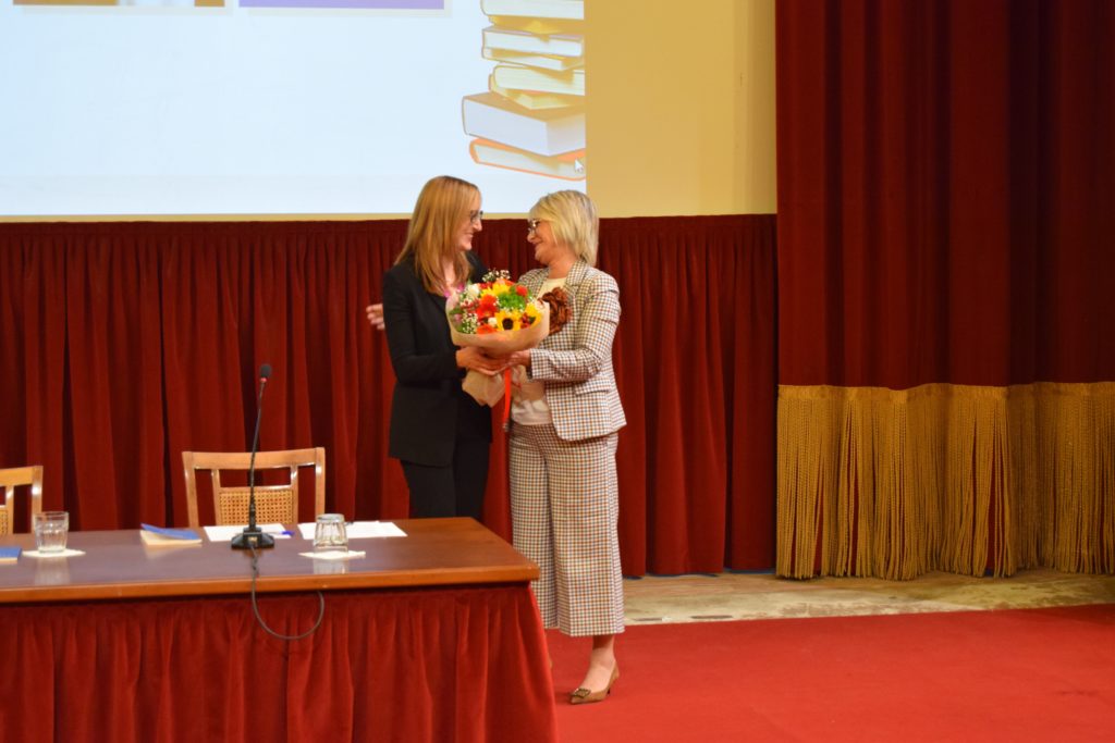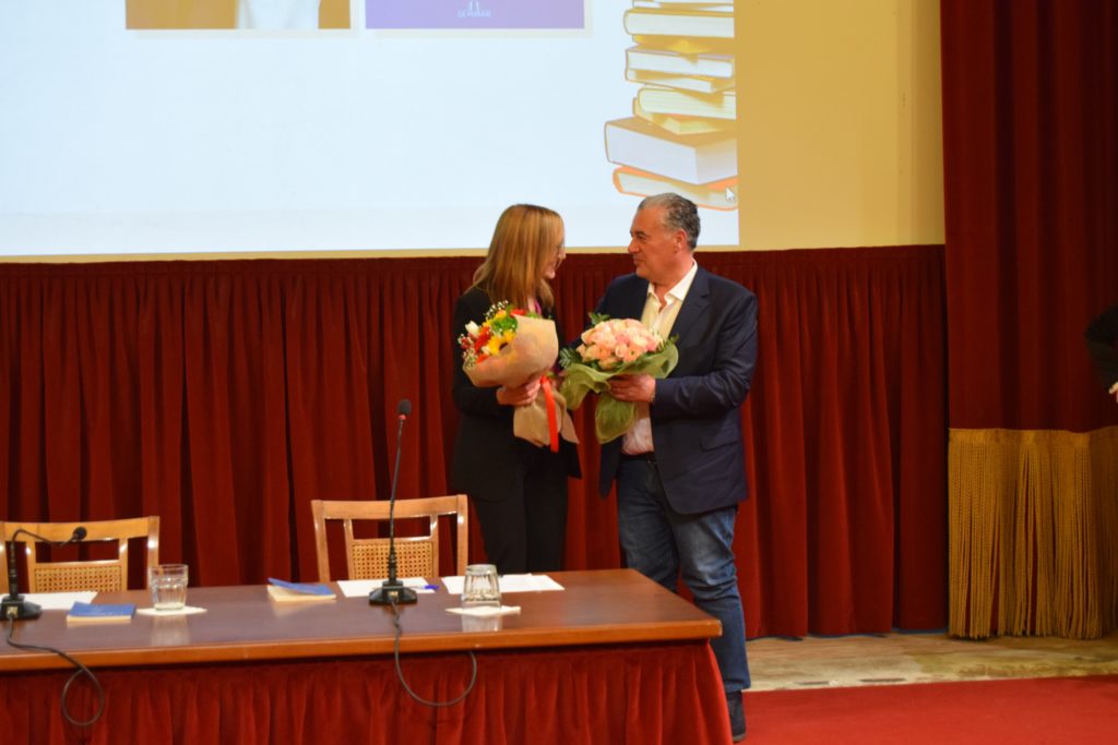 Mara Pardini ha ricevuto due bouquet di fiori offerti dagli assessori Silvana Ormea e Giuseppe Faraldi, e intervistata dalla dott.ssa Marzia Taruffi.