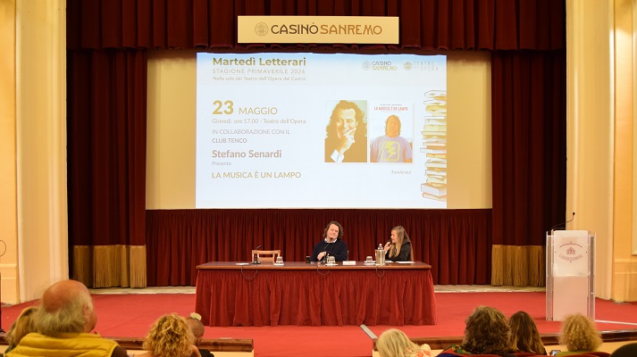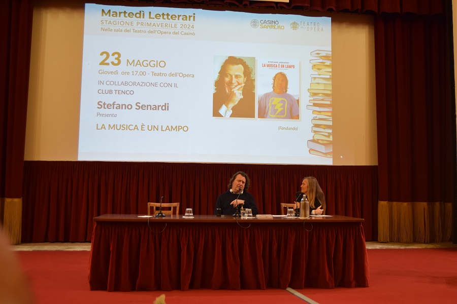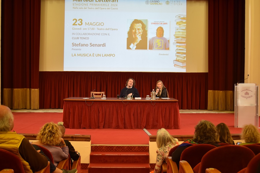 Giovedì 23 maggio nel Teatro dell’Opera del Casinò di Sanremo alle ore 1700, nell’ambito della rassegna “I Martedì Letterari ciclo “Letteratura e musica” in collaborazione con il Club Tenco Stefano Senardi ha presentato il suo libro:” La musica è un lampo” (Fandango)- introduzione di Michele Serra. L’Autore è stato intervistato dalla dott.ssa Marzia Taruffi.