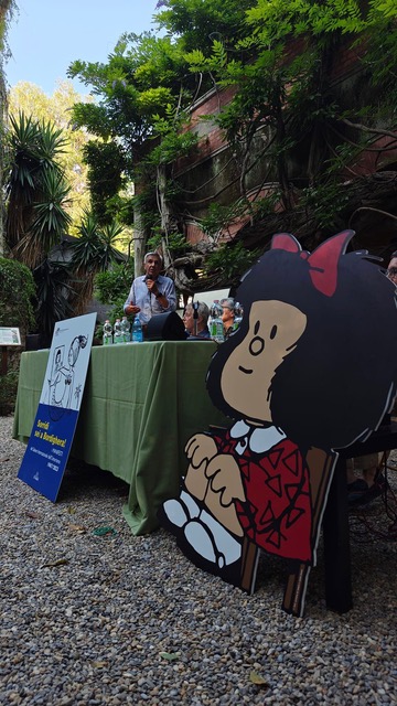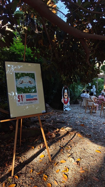 Complice l’inaspettata presenza di alcuni protagonisti della storia dell’umorismo, tra il pubblico in forma di cut-out, Mafalda, Cocco Bill, il clown di Mordillo, la Linea di Cavandoli e i fidanzati di Peynet, si è conversato piacevolmente sui temi dell’umorismo. Tra una Jacaranda sudamericana e i magnifici ficus macrophylla australiani, Lucca Comics, ospite gradito, ha ritrovato le proprie radici. Come ha ricordato Dario Dino-Guida la famosa manifestazione nasce infatti a Bordighera nel 1965 per la scintilla creativa di Umberto Eco e Claudio Bertieri.