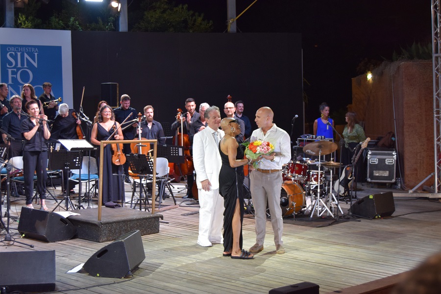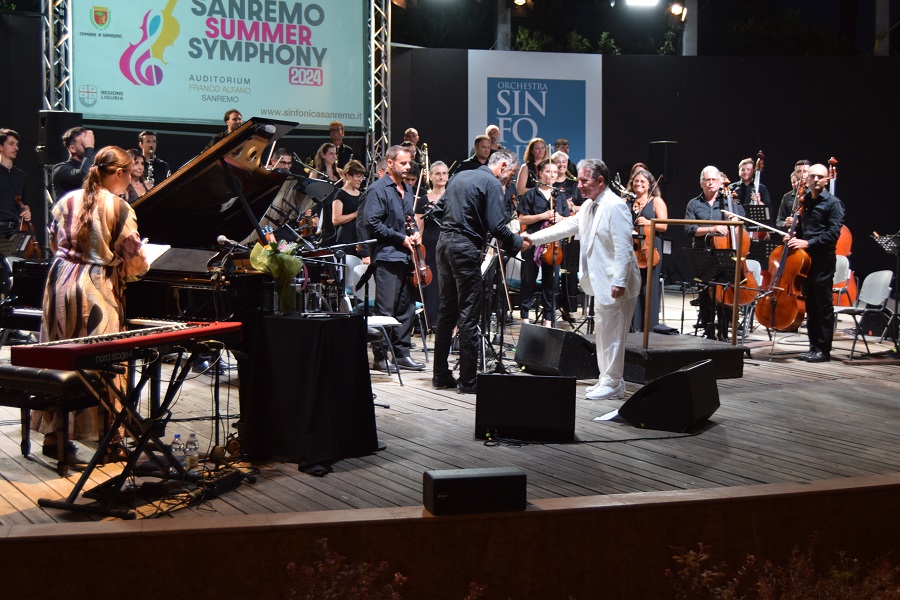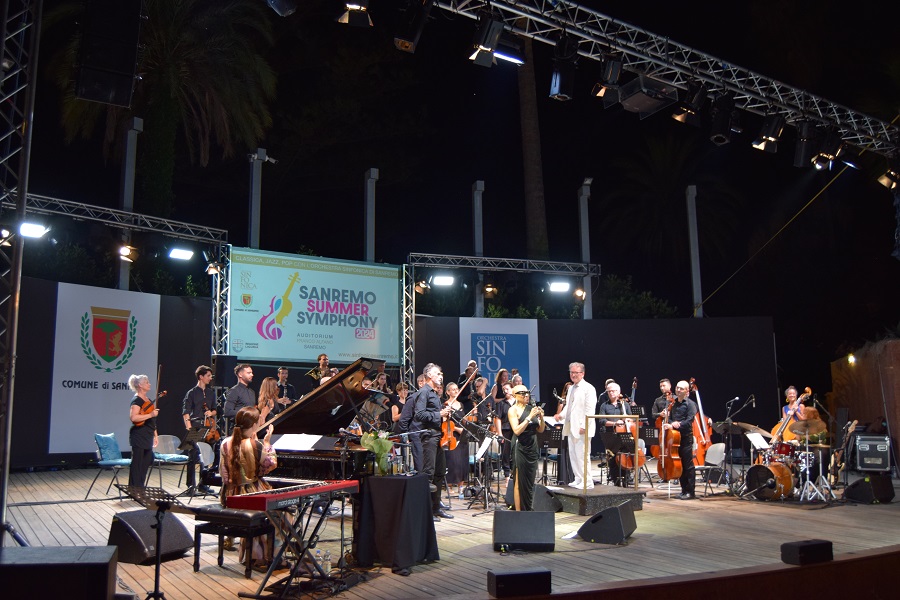L’Artista sul finale è stata omaggiata con un bouquet di fiori di Sanremo dall’Avvocato Filippo Biolé Presidente del C.D.A. Orchestra Sinfonica di Sanremo.