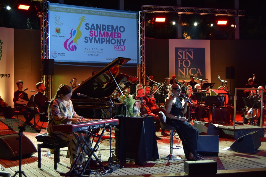 Dee Dee Bridgewater regina e leggenda vivente del jazz e del soul, ha offerto un concerto indimenticabile nella serata del 26 Luglio 2024 al pubblico all’Auditorium Franco Alfano di Sanremo. L’Artista celebre in tutto il mondo per la sua potente voce, che affascina e trascina il pubblico in un vortice musicale ricco di sensibilità artistica di altissimo livello. Dee Dee Bridgewater ha cantato per più di due ore con un carisma eccezionale, infiammando la platea, che l’ha apprezzata con calorosissimi applausi dopo ogni esibizione. Nel corso della serata l’Artista ha ringraziato molto il Maestro Angelo Valori per la magistrale direzione dell’Orchestra Sinfonica di Sanremo e le componenti del suo quartetto composto da Carmen Staaf (my musica director/pianist/keyboard player), Rosa Brunello (upright/electric bass), and Evita Polidoro (drums).