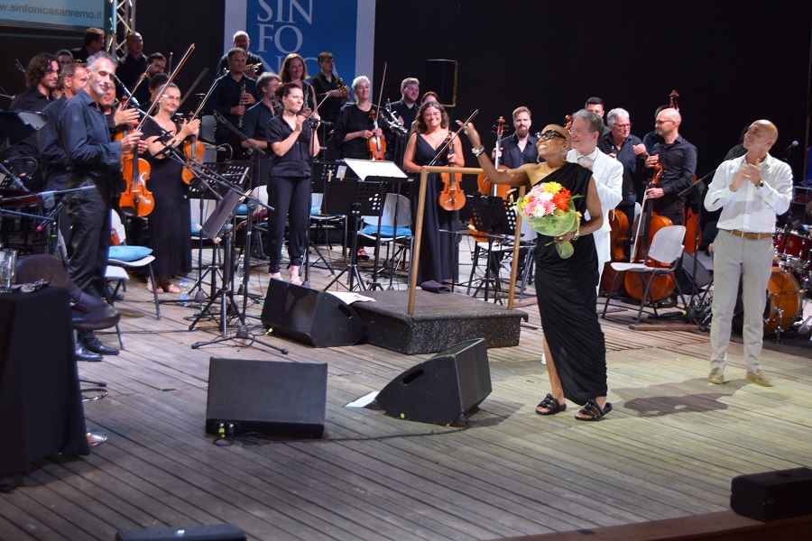 DEE DEE BRIDGEWATER CON LA SUA PRESENZA MAGNETICA SUL PALCO HA INFIAMMATO IL PUBBLICO DELL’AUDITORIUM ALFANO DI SANREMO ACCOMPAGNATA DALL’ORCHESTRA SINFONICA DIRETTA DAL M° ANGELO VALORI