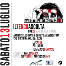In Emilia-Romagna, sempre sabato 13 luglio, IL TENCO ASCOLTA arriva a Novafeltria (Rimini) presso l’Arena sul Fiume (Parco Ivan Graziani) al 3° MALEDETTE MALELINGUE FESTIVAL.