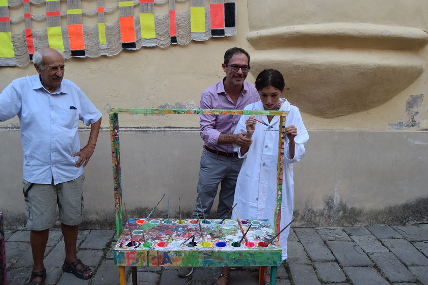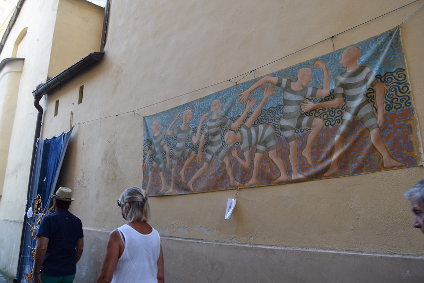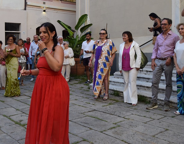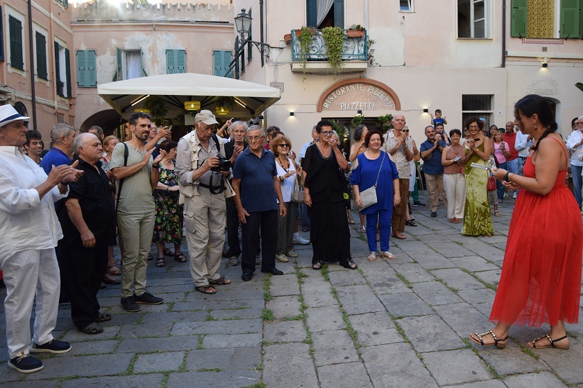 Sulla Piazza del Popolo Marco Balbo ha annunciato al numeroso pubblico il programma della manifestazione e il percorso per ammirare le opere d’Arte, attraverso i caruggi di Bordighera Alta.