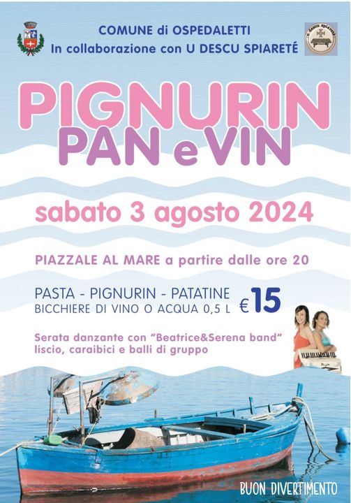 “SAGRA DU PIGNURIN PAN E VIN” SABATO 3 AGOSTO A OSPEDALETTI