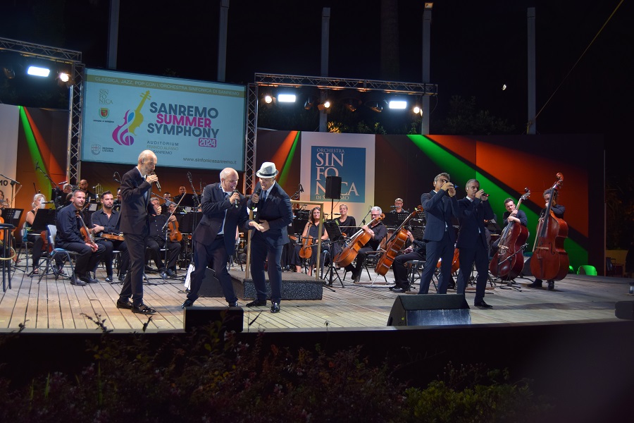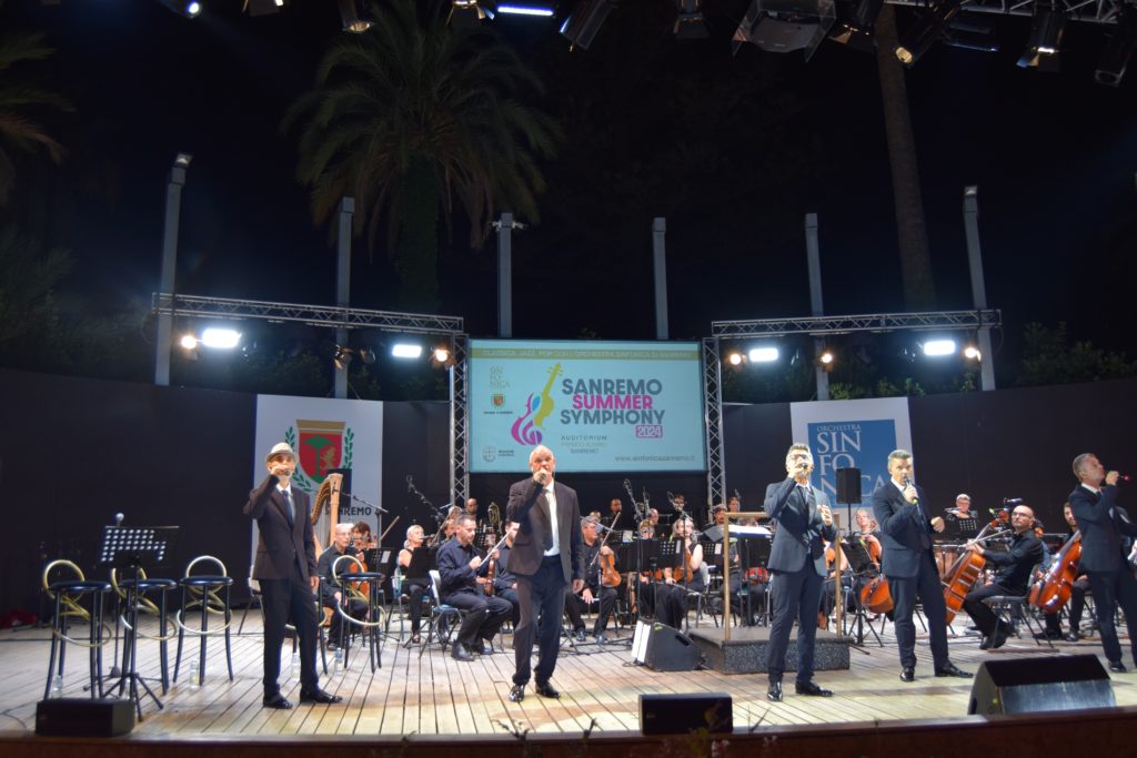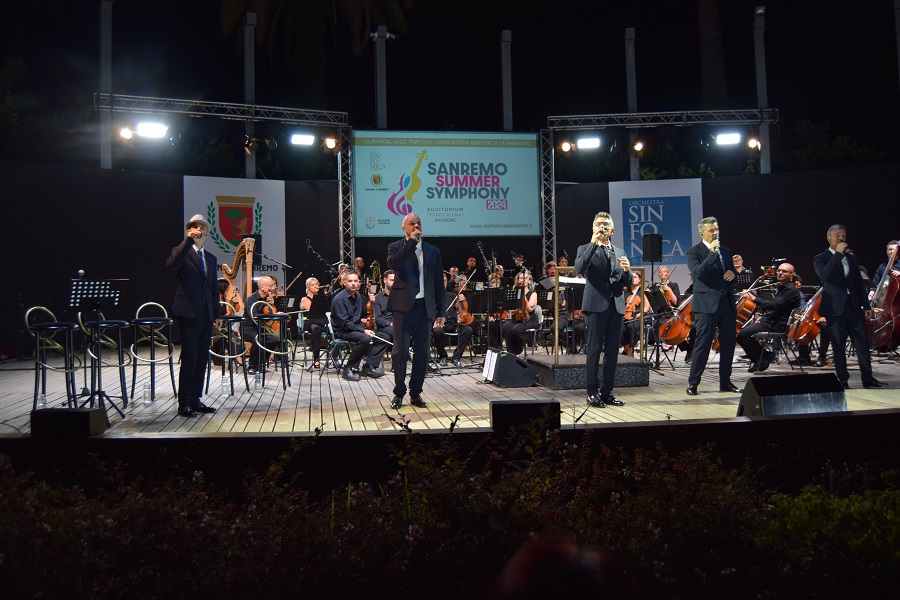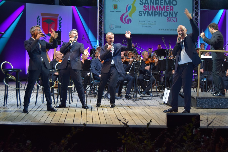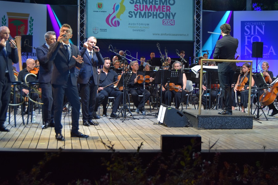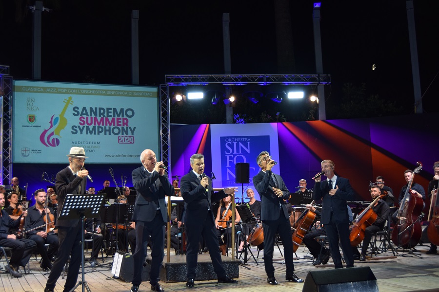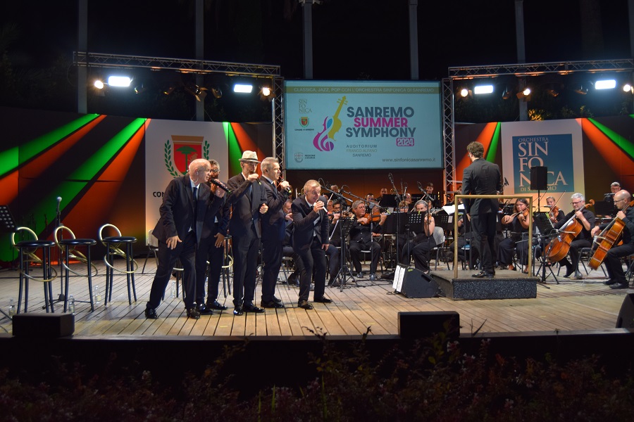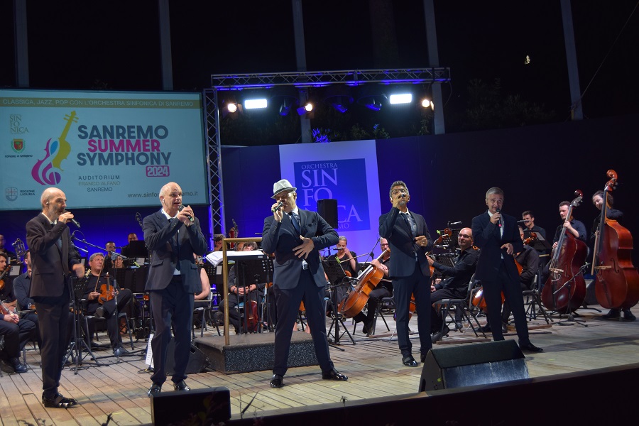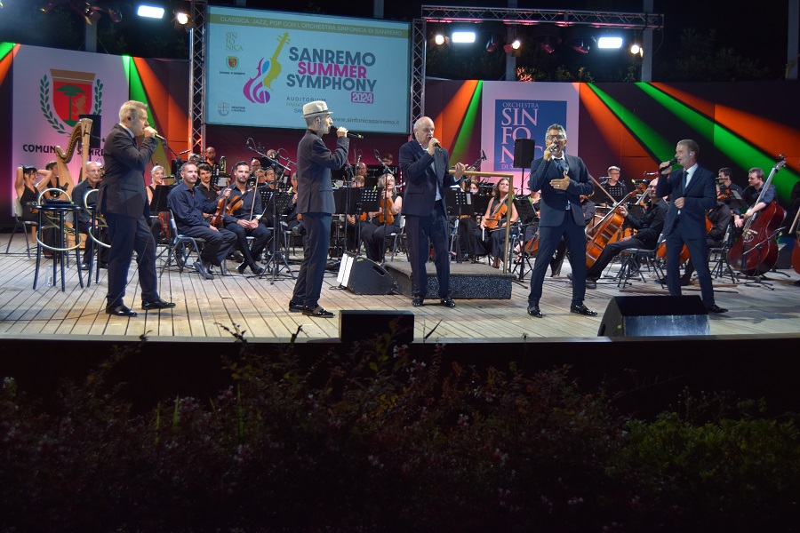 Martedì 13 Agosto ore 21.30 all’ Auditorium Franco Alfano a Sanremo il Quintetto vocale a cappella degli ” Alti e Bassi” ha offerto un concerto indimenticabile al pubblico di Sanremo, per la prima volta accompagnati dall’Orchestra Sinfonica di Sanremo diretta dal M°Ernesto Colombo. Per tutti i presenti è stata un’esperienza musicale intensa e divertente i cinque componenti del gruppo sono ” fantastici” perfetti nella esecuzione di brani legati al gospel, al jazz, allo swing e al grande cinema. Momenti coinvolgenti attraverso un viaggio musicale della polifonia e del talento di ciascuno dei componenti il quintetto di ” Alti e Bassi”, eccellenti interpreti di celebri brani di George Gershwin, Leonard Bernstein, di colonne sonore scritte da Ennio Morricone e dei cartoni animati di Walt Disney. Sul finale a grande richiesta il bis e calorosissimi applausi da parte del pubblico.