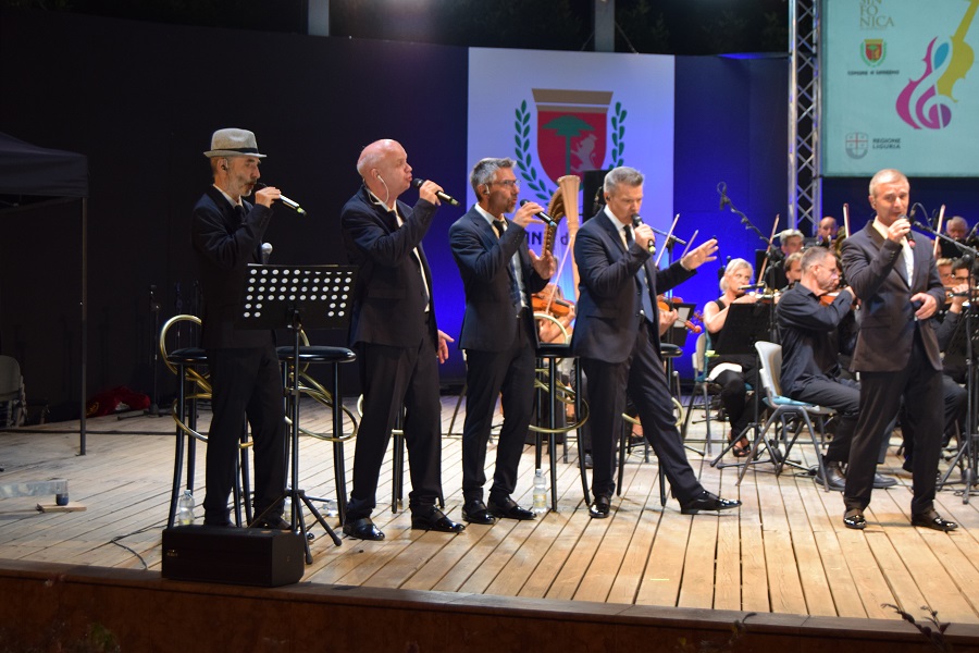 STRAORDINARIO SUCCESSO DEL QUINTETTO VOCALE “ALTI E BASSI” CON L’ORCHESTRA SINFONICA DI SANREMO (VIDEO E FOTO)