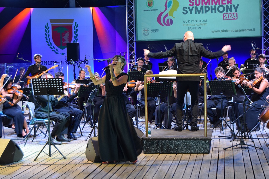 SANREMO SUMMER SYMPHONY 2024 – SERATA DEDICATA AI CANTAUTORI CHE HANNO PARTECIPATO AL FESTIVAL DI SANREMO HA OTTENUTO UN OTTIMO CONSENSO DI PUBBLICO, PER LE INTERPRETAZIONI DEI BRANI DA PARTE DELL’ARTISTA SIGHANDA ACCOMPAGNATA DALL’ORCHESTRA SINFONICA DI SANREMO DIRETTA DAL M° PINO JODICE
