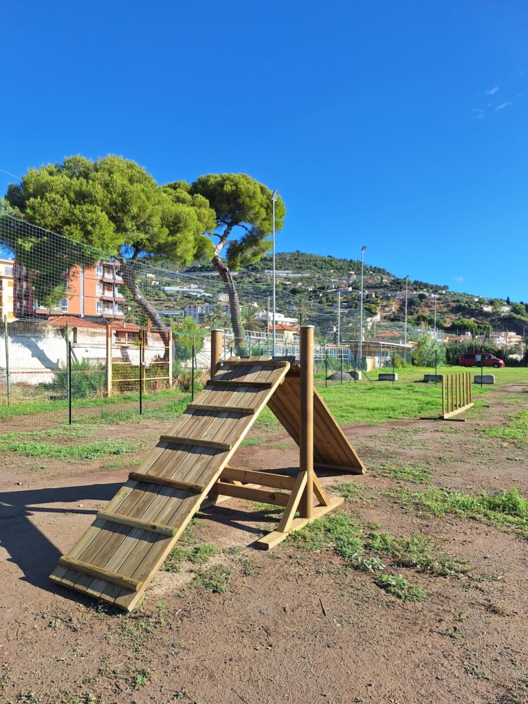 Quasi pronta la nuova area cani nell’ex campo sportivo di Arziglia, a Bordighera; sono in questi giorni in corso gli ultimi lavori di montaggio. Lo spazio, ampio e recintato per permettere agli amici a quattro zampe di sgambettare in libertà , dispone di sei attrezzature per agility dog. Tunnel, slalom, rampa e salto in cerchio sono posizionati con il distanziamento adatto per il gioco e il divertimento; a completare l’allestimento, ci sono tettoia, area pic-nic e fontana.