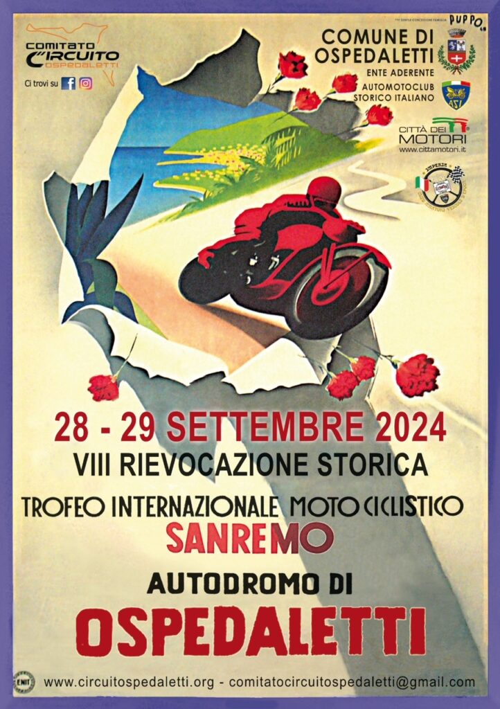 L’ultimo fine settimana di settembre 2024 è dedicato alla grande Rievocazione Storica del Circuito di Ospedaletti dove sino ai primi anni ’70 si è svolto il Trofeo Internazionale Motociclistico Sanremo.