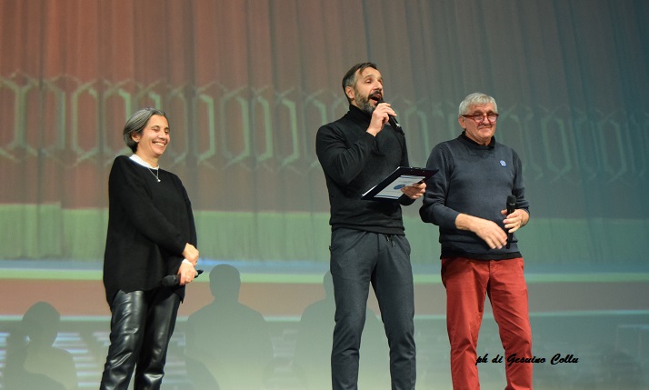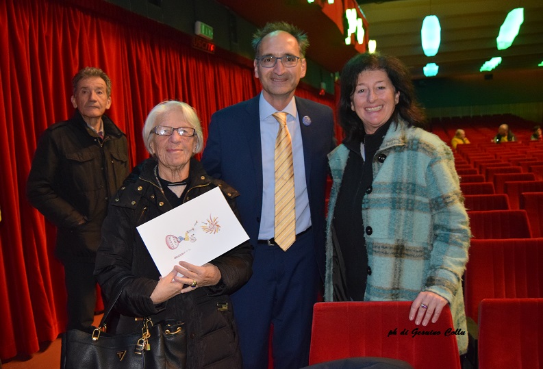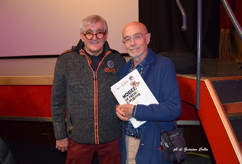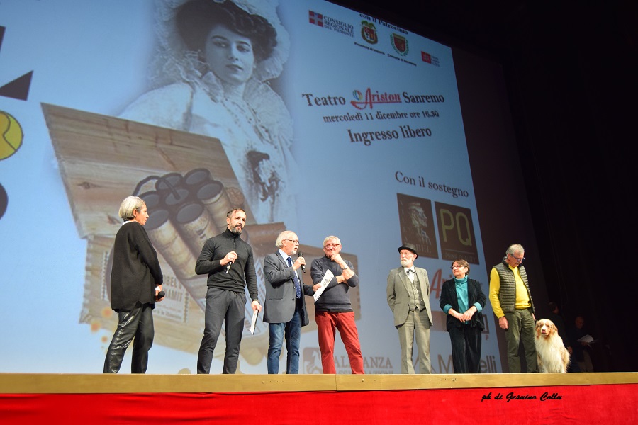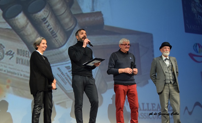 Prima della proiezione del film Massimo Chianello in veste di presentatore ha chiamato sul palcoscenico l’Assessore alla cultura di Sanremo Enza Dedali, il regista Luigi Cantore, Marco Macchi (Alfred Nobel), Roberto Pecchinino Presidente Lions Club Sanremo Host, Carla Vacchino e Walter Vacchino proprietari del Teatro Ariston, Enrico Oliva Direttore dell’Associazione Internazionale Alfred Nobel Sanremo.