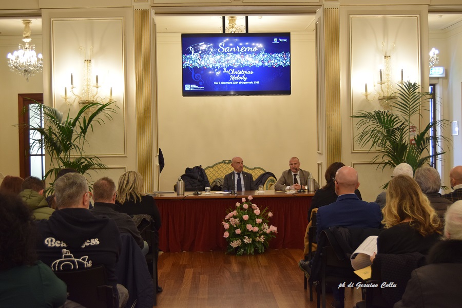 ALESSANDRO MAGER SINDACO DI SANREMO E ALESSANDRO SINDONI ASSESSORE AL TURISMO HANNO PRESENTATO IL RICCO CALENDARIO DI EVENTI PER IL NATALE 2024 E IL CAPODANNO 2025- ALLA SALA PRIVATA DEL TEATRO DEL CASINO’