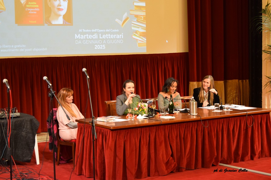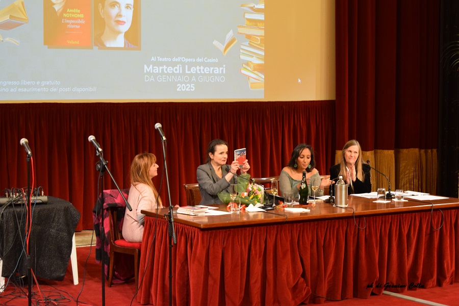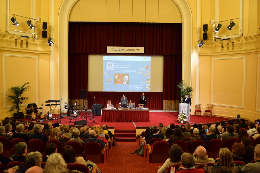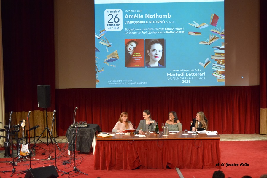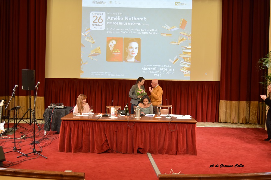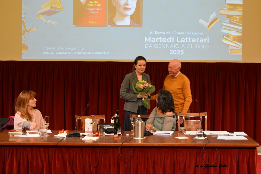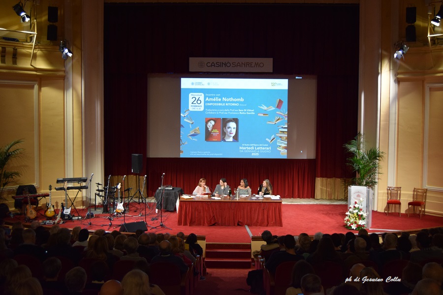 Giovedì 26 febbraio 2025 alle ore 16.30 nel Teatro dell’Opera del Casinò di Sanremo, la scrittrice belga Amélie Nothomb, ha presentato davanti ad un folto pubblico il suo libro “L’Impossibile ritorno” (Voland), nell’ambito dei Martedì Letterari, curati da Marzia Taruffi.