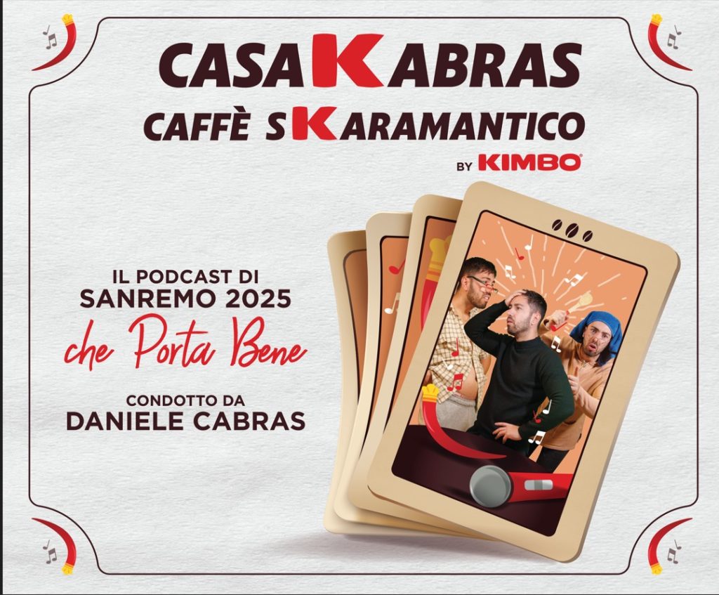 Al via da martedì 11 fino a sabato 15 febbraio CASA KABRAS – CAFFÈ SKARAMANTICO BY KIMBO, il format social di Sanremo 2025 che porta bene condotto dal content creator DANIELE CABRAS