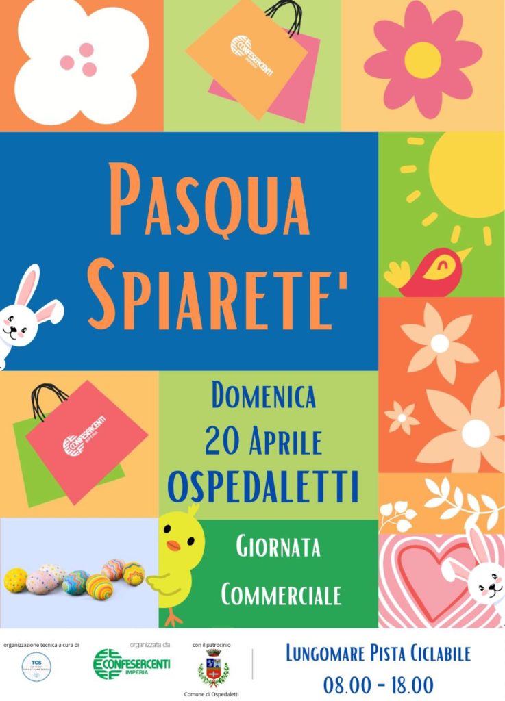 Domenica 20 aprile dalle ore 8 alle ore 18 la Confesercenti della provincia di Imperia presenta la “Pasqua Spiaretè” lungo la pista ciclo-pedonale.