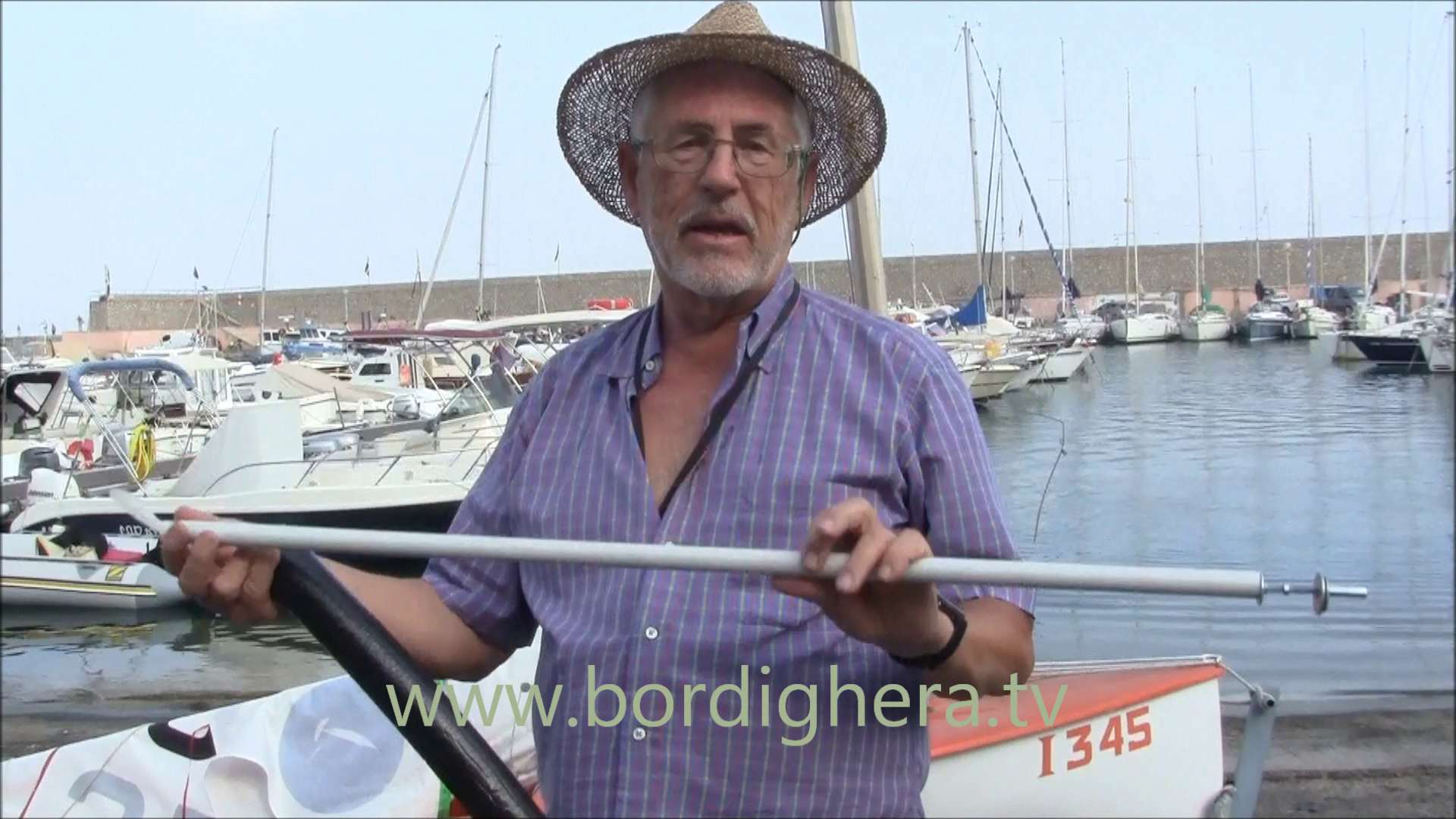 Bordighera 11 agosto 2012, l’istruttore di vela Silvano Volcan illustra  come si può realizzare un motore fuoribordo elettrico  in economia per  piccole barche a vela.