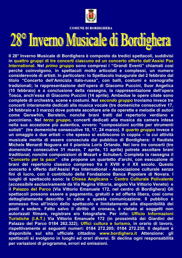 COMUNE DI BORDIGHERA FONDAZIONE LUZZATI-TEATRO DELLATOSSE presentano LA PORTA DELLA TOSSE SUL PONENTE Successivamente saranno comunicati, prezzi, orari e modalità di prenotazione degli spettacoli