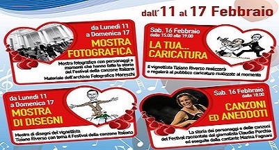 L’omaggio al Festival della Canzone Italiana curato da Claudio Porchia con le foto dell’Archivio Moreschi i disegni di Tiziano Riverso e la voce di Marisa Fagnani ospite a Roma dal 11 al 17 febbraio