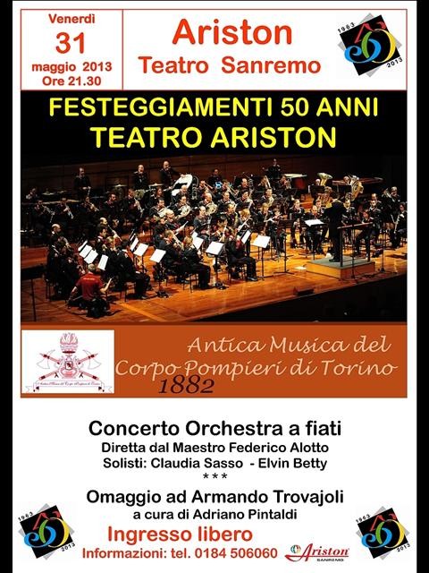 Venerdì 31 maggio 2013 a Sanremo il TEATRO ARISTON compie 50anni.