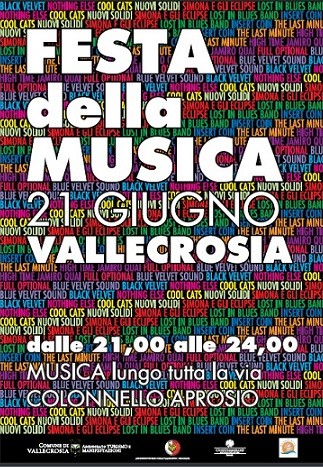 La manifestazione, si svolgerà venerdì 21 giugno 2013 dalle ore 21,00 alle ore 01,00, per celebrare il solstizio d’estate. Lungo la Via Colonnello Aprosio, la strada cittadina principale, che per l’occasione sarà chiusa al traffico veicolare, verranno sistemati, ad adeguata distanza uno dall’altro, numerosi gruppi musicali giovanili che suoneranno dal vivo. Si esibiranno: Black Velvet, Nothing Else, Cool Cats, Nuovi Solidi, Lost in Blues Band, Insert Coin, Blue Velvet Sound, High Times Jamiro Quai, Full Optional, Solo Per Caso e la Spes Band.