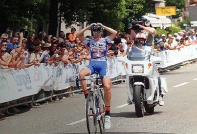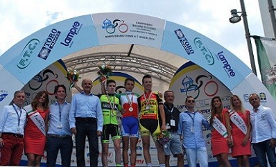La gara è stata veloce con tanti attacchi ma senza nessun risultato data la velocità sostenuta sino al km 15 dove il nostro atleta Alessandro Montali assieme con un altro atleta vedendo che il gruppo controllava il migliore atleta italiano prende l’iniziativa dove per 10 km conducono in comune accordo guadagnando una trentina di secondi e dietro i nostri facevano lavorare le altre squadre all’inseguimento (tattica azzeccata)  sino a che dal gruppo ne escono altri due al loro inseguimento e subito dopo altri quattro e allora da li entra in scena Nicolò Garibbo che si mette a ruota dei quattro senza dare nessun aiuto nel raggiungere la testa della corsa ma al km 27 vengono raggiunti e al km 28 sotto lo striscione dell’arrivo era posto il traguardo volante che con grande merito ha vinto il nostro Nicolò non solo per le sue doti ma per l’umiltà mostrata nella settimana prima degli Italiani che appena saputo di essere stato scelto per la squadra rappresentativa della Liguria aveva confidato che si sarebbe messo a piena disposizione per il suo compagno di squadra e cosi come lo avevamo promosso come il regista per questa gara ha svolto un lavoro egregio tenendo coperto Tiziano e levandosi anche soddisfazione personale di vincere il traguardo volante, dove subito dopo è entrato in azione Tiziano che e stato seguito subito a ruota da un altro atleta i due guadagnano subito un bel margine dai diretti inseguitori ma con Alessandro e Nicolò che stavano attenti a chi usciva dal gruppo per chiudere subito dato che poteva essere molto importante far guadagnare secondi, sino ad arrivare ai meno 10 km dall’arrivo ad avere 30 secondi di vantaggio e con ancora da affrontare la salita posta ai meno 6 km e li nell’affrontare la salita Tiziano prende ancora una volta l’iniziativa dal compagno di fuga e per gli ultimi quattro km come subito dopo il traguardo ha confidato sono stati i più lunghi della sua giovane età , ma all’arrivo in solitaria nel l’ultimo km sostenuto dagli applausi e incitamenti del pubblico alzava le braccia al cielo e con le mani a formare un cuore per tutti quelli che gli vogliono bene. Superato l’arrivo stremato ma felice dalla gioia per il titolo Italiano conquistato sprofondava a terra dove dal suo DS Guerino Lanzo i genitori i compagni e tutti gli amici a festeggiare un trionfo di tutta la squadra come lui stesso nelle tante interviste non finiva di ringraziare i suoi amici Nicolò e Alessandro fondamentali per la vittoria.