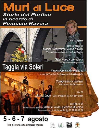 Il Teatro del Marchingegno e il Rione Pantano in collaborazione con il Comune di Taggia, volendo ricordare Pinuccio Ravera, storico Capo Rione del Pantan scomparso lo scorso settembre, organizzano il 5, 6 e 7 agosto una serie di eventi dedicati al ruolo che il Rione ha svolto nei trentatre anni di Festeggiamenti di San Benedetto.