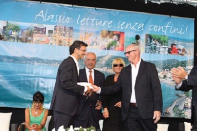 Alassio sabato 14 settembre 2013- Alassio una città per le letture senza confini, una immensa biblioteca sul mare, ha visto ieri la cerimonia di premiazione  per “Un Editore per l’Europa” 2013 ,il premio è stato assegnato alla Casa Editrice Bompiani. A ritirare il Premio è stata Elisabetta Sgarbi, direttore editoriale Bompiani, intervistata ha illustrato esaurientemente le funzioni dell’editor e la sua grande attenzione nella scelta  dei testi presentati dai vari autori al fine di ottenere un  sempre  maggior sviluppo dell’editoria. L’ evento è stato presentato dall’immancabile Gerry Scotti, che ha introdotto Fabio Stassi trionfatore della 19^edizione Premio Alassio Centolibri  “Un autore per l’Europa” per il suo romanzo”L’ultimo ballo di Charlot” ed. Sellerio.Un libro ricco di avventura, sentimento , lacrime e risate, non è una danza macabra, è un racconto tra finzione e realtà nel mondo del circo, premiato dalla Giuria per l’originalità compositiva.  Nella parte finale l’autore Fabio Stassi ha autografato numerosi volumi, distribuiti dalla Cartoleria Libreria Pozzi fratelli di Alassio, ai lettori ed ammiratori presenti.
