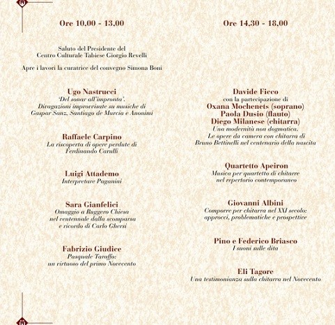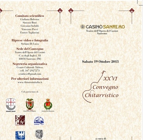L’evento è organizzato ad ingresso libero e gratuito dal Centro Culturale Tabiese e dal Comitato Scientifico del progetto Chitarra in Italia di Modena, patrocinato da Regione Liguria, Provincia di Imperia, Comune di Sanremo, Biblioteca Nazionale Universitaria Estense, Accademia delle Arti e delle Scienze di Modena.