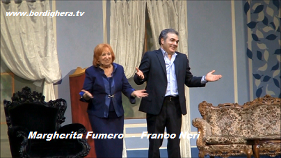 Sanremo 08 novembre 2013 ore 21,30 – La vita è più bella se c’è il buon umore senza ombra di dubbio, ma come è possibile possederlo il “buon umore”? può esserci di aiuto anche la visione a teatro di una divertente commedia come quella di Margherita Fumero e Franco Neri ,dal titolo ” Vedova Pautasso Antonio in cerca di matrimonio”. Battute del tipo : “su vai a cambiarti! Stasera ti porto a cena fuori! ….. E prepara in terrazza……!” . Frasi efficaci  che ci hanno fatto sorridere piacevolmente  sono state quelle del protagonista maschile Franco Neri nei panni di Francesco di Grimaldi insieme alla nota Margherita Fumero nel ruolo di Teresa.La commedia in due atti è stata rappresentata in versione rivisitata , fu infatti il grande Erminio Macario a renderla famosa negli anni 40. E prendendone  l’ispirazione gli interpreti l’hanno nuovamente  riportata in palcoscenico al Teatro Ariston di Sanremo con successo. Due ore di spettacolo esilarante, intervallato da brevi brani musicali con cambi di scena velocissimi e tante gag. Gli attori Maria Occhiogrosso, Antonio Sarasso, Franco Barbero, Alessandro Marrapodi con la regia di Cristian Messina hanno impersonato i ruoli dei vari personaggi ottimamente insieme a Margherita Fumero e Franco Neri, due protagonisti celebri nel panorama artistico nazionale.