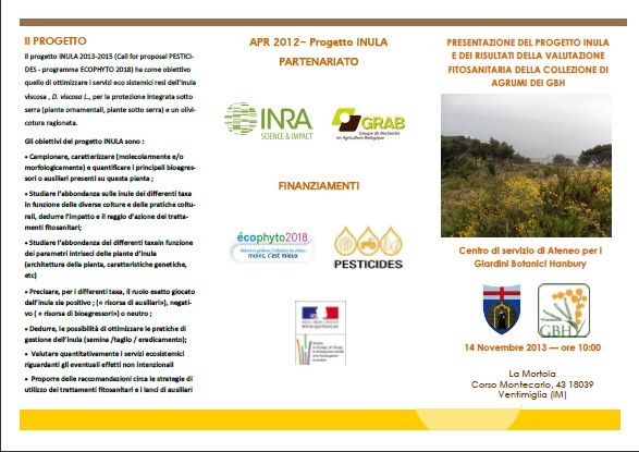 Cultura Ventimiglia – Conferenza sul Progetto Inula 12 Novembre 2013 admin Programma della conferenza che si terrà nella Sala dei Camini dei Giardini Botanici Hanbury GIOVEDI’ 14 NOVEMBRE 2013 alle ore 10,00. G.C.