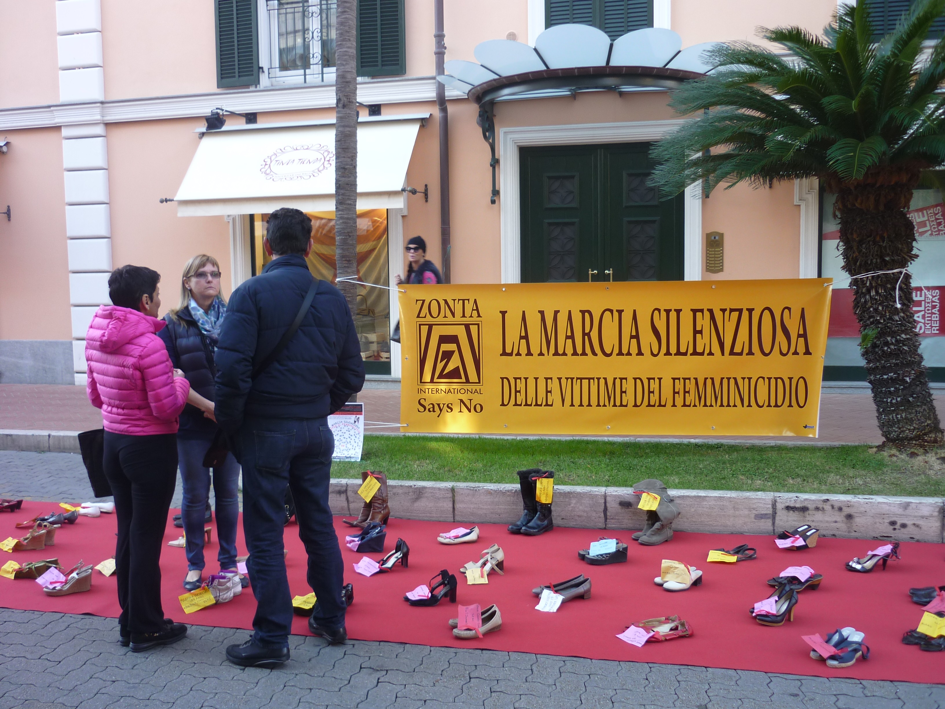 Bordighera 07 dicembre 2013 Alle ore 10:00 in Corso Italia ” salotto di Bordighera” alcune delle  rappresentanti dello Zonta Club Ventimiglia hanno dato inizio alla” Marcia Silenziosa” contro il Femminicidio, l’evento si concluderà alle ore 18:00. Nel video la Presidente Arch. Laura Tibald illustra il significato e l’obiettivo di questa installazione, fatta in memoria di donne uccise nell’anno 2012 /2013, per sensibilizzare l’opinione pubblica .