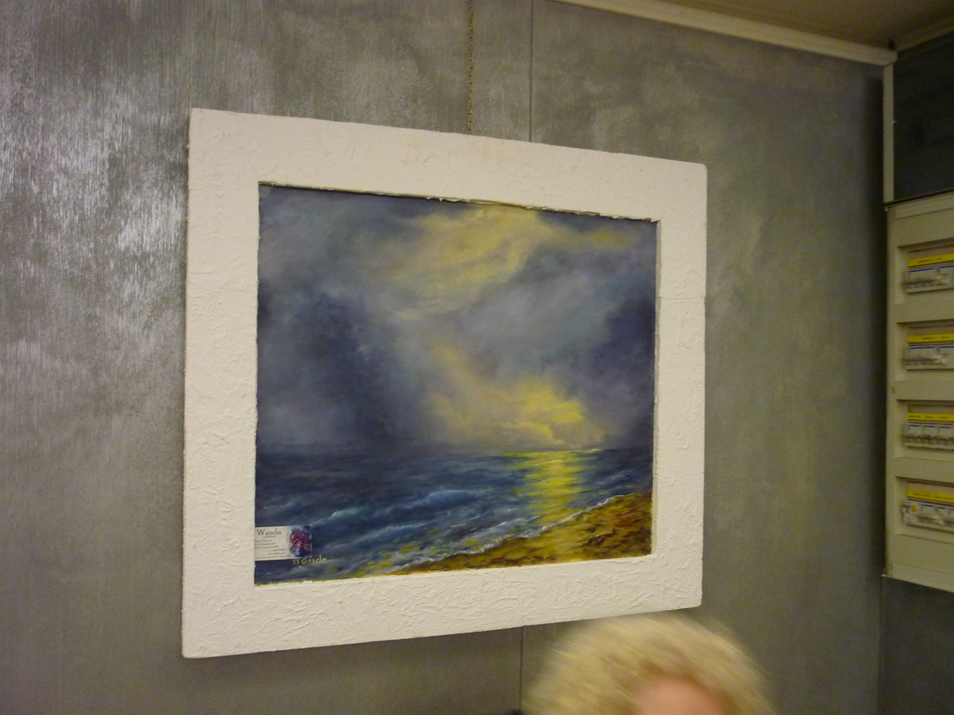 Bordighera 9 gennaio 2014, Wanda Plataroti alle ore 17,30 ha inaugurato al Caffè Mondino la sua personale di pittura, artista che vive ed opera in Liguria,ha partecipato a concorsi internazionali , diffondendo la sua arte anche all ‘estero.Le sue tele dipinte ad olio ritraggono  fiori e paesaggi di cieli e mare , raffinate pennellature dai tenui e delicati toni del rosa , dell’azzurro e del verde. Ammirando le sue opere  si intravede  lo spirito che anima la pittrice  e la sua affascinante creatività . L’esposizione è visitabile tutti i giorni al Caffè Mondino sino al 20 gennaio.