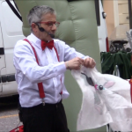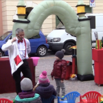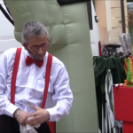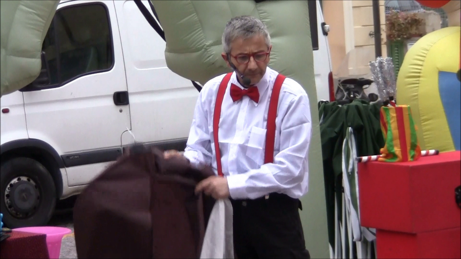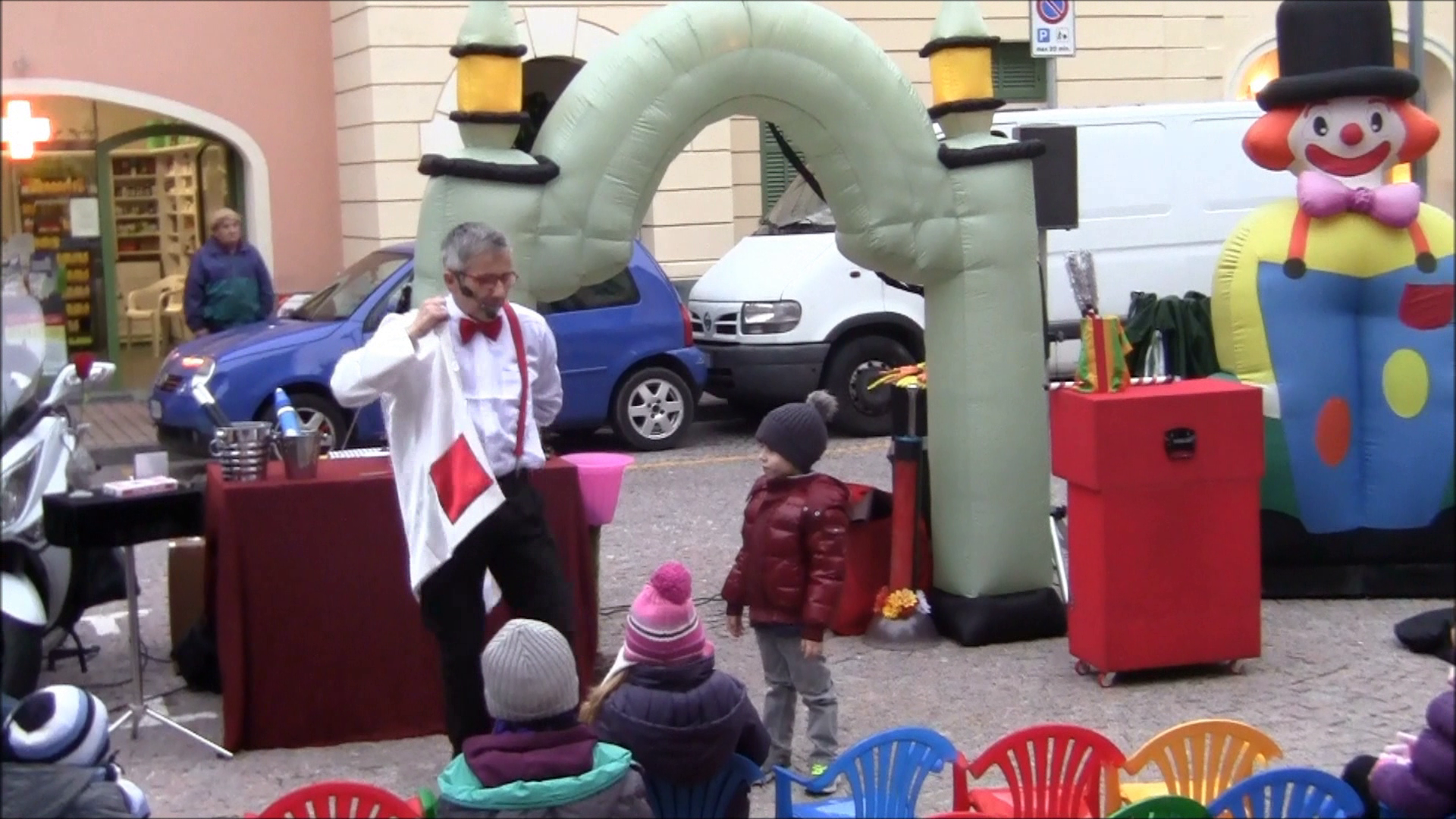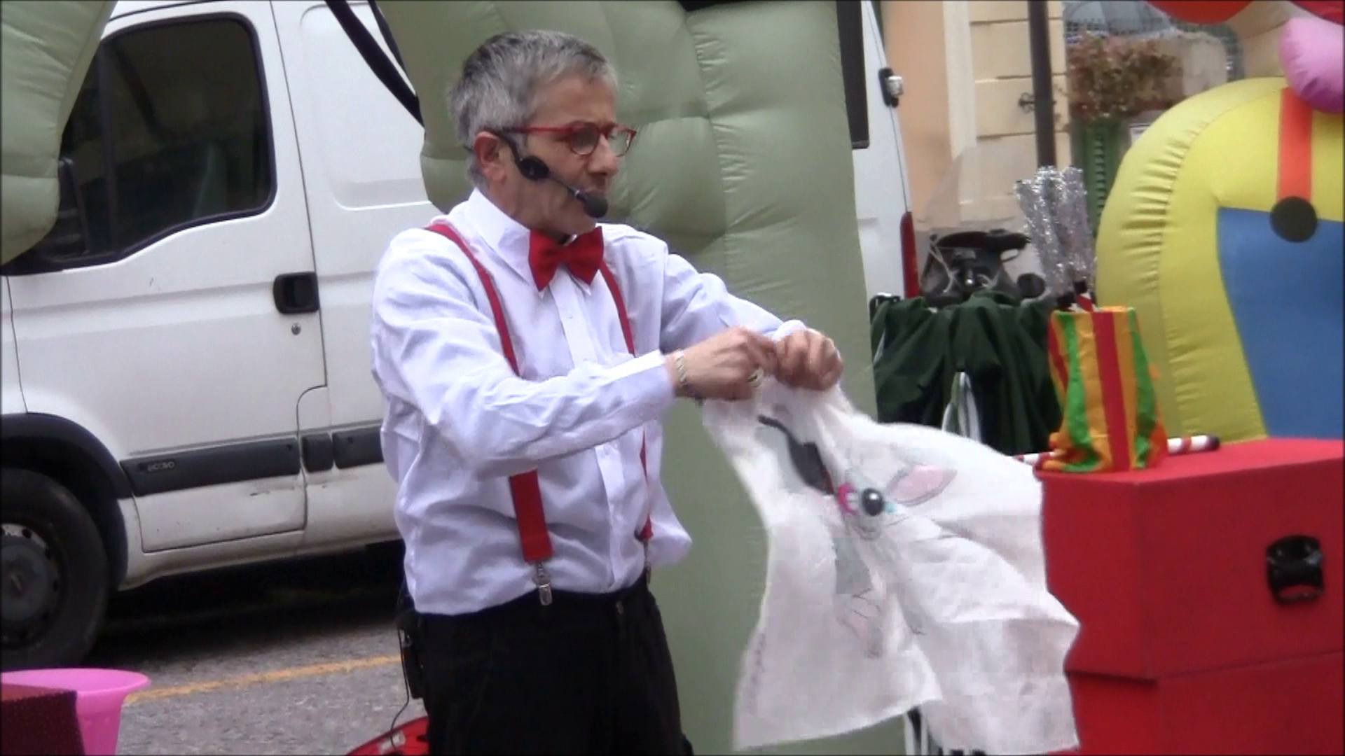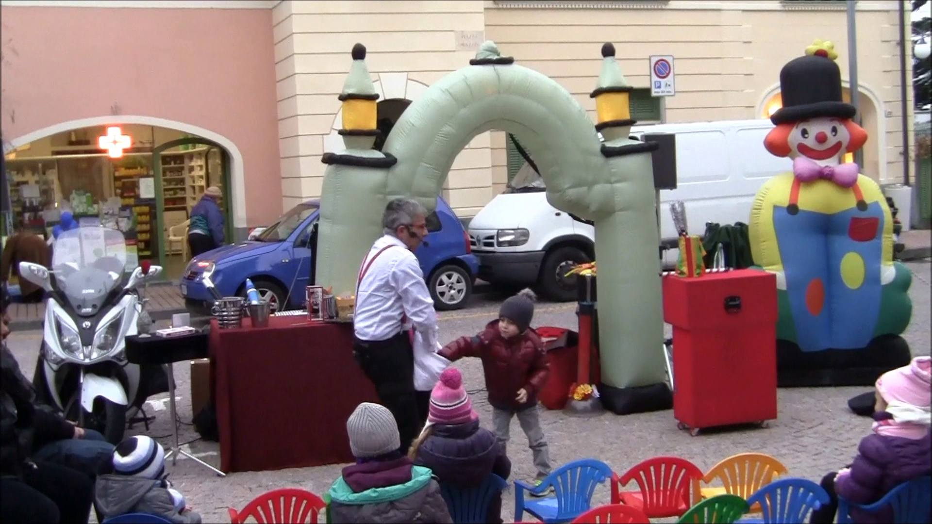 Bordighera 01 gennaio 2013-in Piazza Mazzini- il Teatro dei Mille Colori con Salvatore Stella ha presentato uno spettacolo dedicato ai bimbi , la scenografia creata con pupazzi gonfiabili,  giochi di prestigio, foulards e oggetti  dai mille colori è subito piaciuta ai piccoli spettatori, tutti molto attenti alle parole del “Personaggio Cantastorie”  e pronti a partecipare ai giochi. Ma il tempo ,in questi giorni poco stabile, ha fatto interrompere per la pioggia lo spettacolo. E in breve tutti si sono allontanati, con la speranza di rivedere il ” Personaggio Cantastorie” in un’altra  data, che sarà il giorno 5 gennaio in occasione della tradizionale ” Befana Bordigotta”.