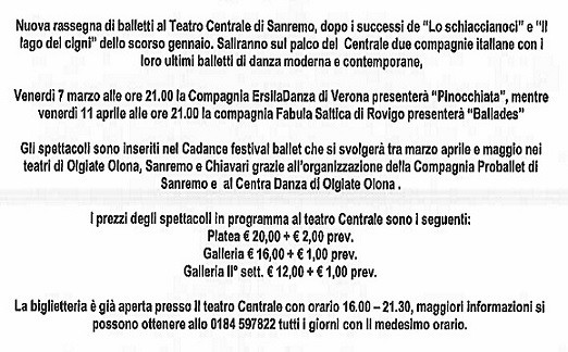 Sanremo – nuova rassegna di ballett al Teatro Centrale