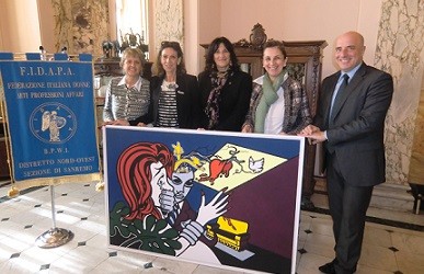 L’occasione il dono di un dipinto dedicato al tema della violenza sulle donne realizzato appositamente dall’artista trentino Fulvio Bernardini, in arte Fulber. L’opera, che sarà oggetto di una mostra itinerante, debutterà al Festival di Sanremo