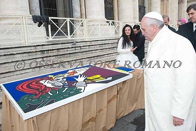 Alla fine della mostra itinerante il dipinto verrà poi regalato al Santo Padre.