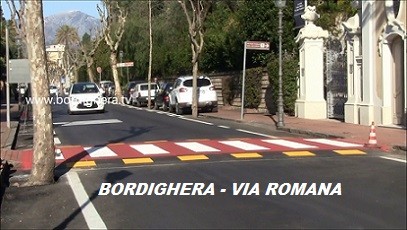Bordighera 07 marzo 2014  nella città sono stati posizionati dei dossi artificiali dell’altezza di sette centimetri per limitare la velocità  dei mezzi che circolano sulla Via Romana davanti all’ingresso di Villa Regina Margherita, nella zona dell’ex Hotel Continentale e dell’ Hesperia. L’intervento è stato  attuato per migliorare la sicurezza dei cittadini.