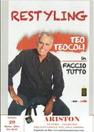 Gli appunti comici e l’effervescenza dei personaggi creati da un fuoriclasse della comicità come Teo Teocoli, presentati in veri e propri pamphlet teatrali. Forte della esperienza maturata da oltre 10 anni sui palchi più prestigiosi, l’Artista racchiude in”RESTYLING” oltre 50 anni di carriera, uno spettacolo che si articola tra cabaret, canzone, cinema, tv e teatro con una serie di personaggi e monologhi che Teo presenterà in teatro con qualche aggiornamento dettato dai tempi cambiati. Le nuove storie di Felice Caccamo, Celentano, Ray Charles e degli altri suoi “cavalli di battaglia”, vengono reinterpretate in una chiave più attuale ed innovativa. “RESTYLING” è la sintesi tra cabaret e varietà con un repertorio irripetibile di gag, canzoni e storie con perifrasi esilaranti che rendono lo spettacolo una serata da ricordare, dove, racconta attraverso l’improvvisazione sublime e la gestualità unica di un grande “showman”, saranno raccontati retroscena esilaranti.